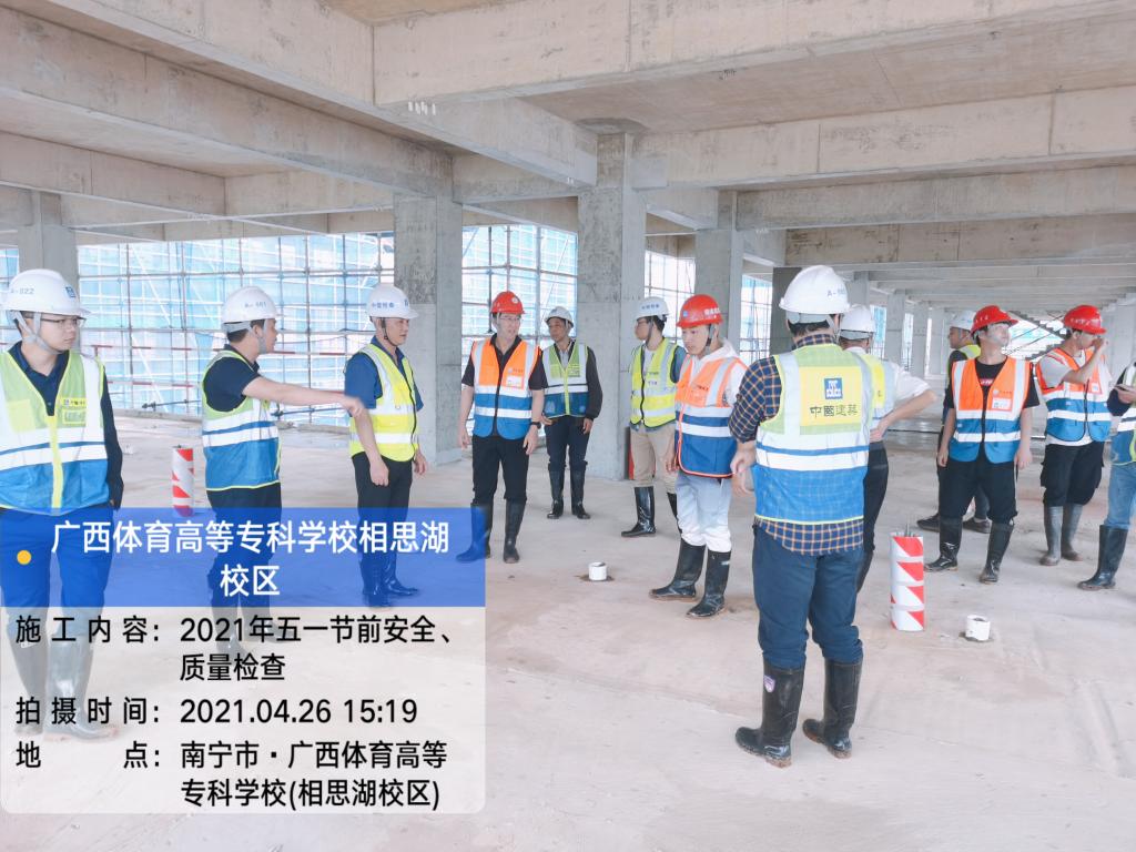 (十)4月26日,新校区办联合项目监理部门和总承包施工单位开展“五一”节前安全质量大检查。检查组重点检查安全文明施工措施、质量安全管理体系建设活动落实情况,检查了施工主干道材料堆积、1#、2#宿舍楼安全通道口排水沟设置、楼道消防设施设置以及外架脚手板、安全兜网建筑垃圾清理等问题,对检查中发现的问题责成总承包单位于28日前完成整改。检查组还对近期雷雨天气保安全、保质量作业提出相关要求,总承包单位表示坚决落实安全文明施工要求,如期完成整改,进一步消除项目安全隐患。(附图12)