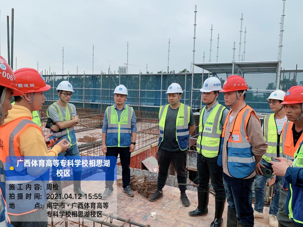 (九)4月22日,新校区办在项目现场组织召开第二十七次现场例会。会议要求:总承包单位于4月26日上报4月份质量安全体系建设月的工作总结;组织学习和认真落实自治区住房城乡建设厅和南宁市住房和城乡建设局近期下发文件;认真落实“桂建通”实名刷脸管理制度;全咨单位计划25-27日,会同总承包单位每天不定时现场检查,确保4月28日封顶仪式各方面保障工作能够落实到位;B地块北侧征地清表工作即将完成,抓紧时间跟进3-6#宿舍楼初步设计和施工图设计工作;质量安全管理体系建设月活动开展至今,取得一定的成效,咨单位和总承包单位做好工作总结,继续发扬好的工作作风,加强薄弱环节,不断完善项目质量安全管理体系。(附图11)