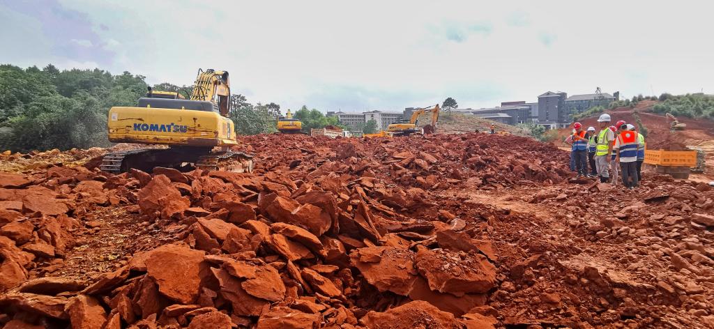 参与各方通过现场实地取样、观察,就已开挖土层风化岩出现范围、特性、大致数量以及因此造成的施工难度进行了共同见证。随后,新校区办组织参与各方在现场项目部第二会议室召开专题协调,会议要求参建各方要加强沟通协调,对现场出现的土层变化要及时通报,并及时进行现场取证确认,最终风化岩性质确定以勘察单位根据现场实际出具的最终意见为准。