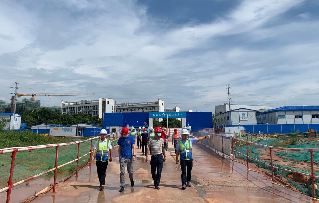 7月21日,广西体专相思湖校区项目总承包单位中建三局第四飞行检查组组长李延昊一行五人到相思湖校区项目现场进行飞行检查。