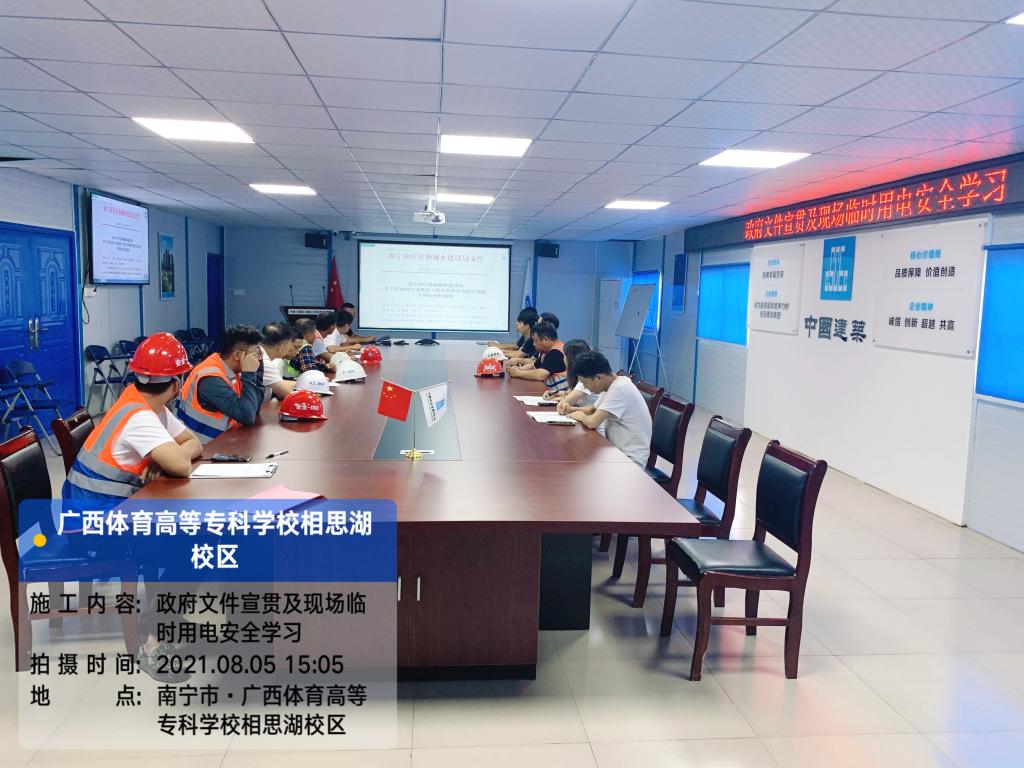 8月5日下午,新校区办联合项目全过程咨询单位监理部组织召开政府文件宣贯暨临时用电安全学习会,总承包单位及劳务单位生产及安全管理员参会。