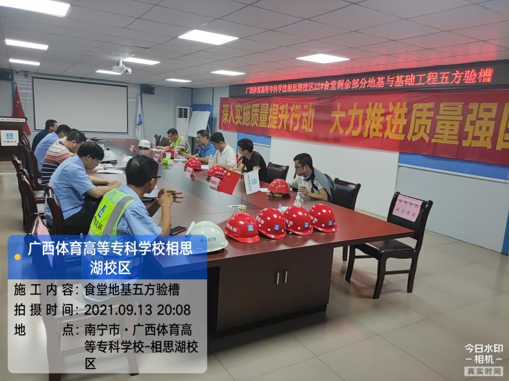 为预防近期无规律雨水对爱体育电子官方网站相思湖校区项目食堂单体基础施工影响,避免因基槽泡水影响施工进度及质量,2021年9月13日晚,新校区办会同全咨单位现场研究后,决定立即组织项目全咨单位(监理)、工程总承包施工和设计单位、勘察单位等参建单位开展项目食堂基槽验收工作。