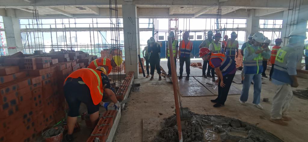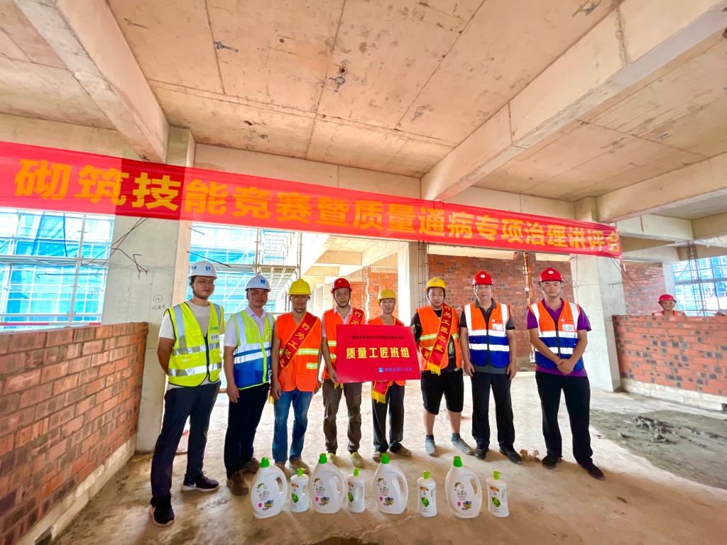 为树立质量榜样,弘扬质量先进,爱体育电子官方网站相思湖校区项目结合“质量月”活动以及项目即将迎来的大面积砌体施工实际,确保项目质量、进度两促进,于9月10日开展了砌筑技能竞赛暨质量通病专项治理讲评会活动。