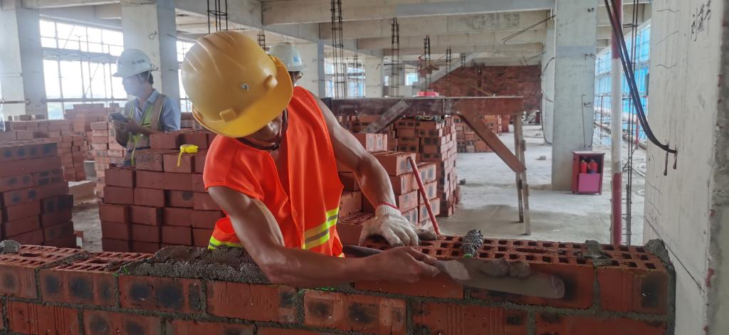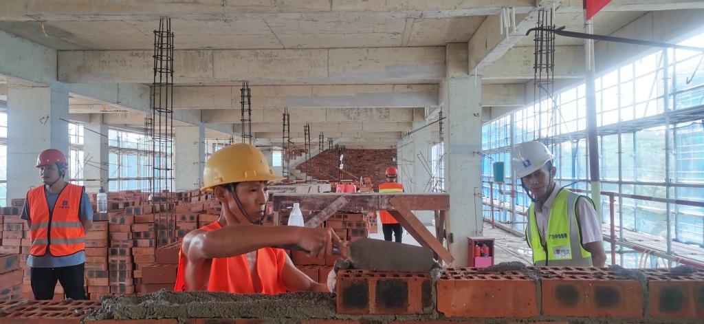 活动从目前项目劳务分包队伍中,挑选4名优秀砌筑工人代表进行现场比拼。过程中,参赛代表根据比赛要求,运用熟练的砌筑技法进行砌筑。期间,由新校区办、全咨单位监理部、总承包单位有关人员组成的评委组,穿梭于各参赛队之间,对队员们的砌筑技能和质量、存在问题等进行评判。