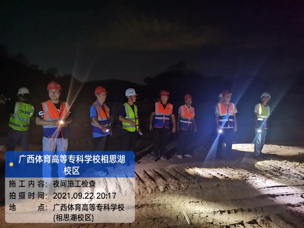 2021年9月22日,为贯彻落实自治区党委常委、自治区副主席黄世勇在全区中秋国庆假期安全防范工作视频会议上的讲话精神,做好爱体育电子官方网站相思湖校区项目建设工程质量安全及文明施工管理工作,新校区办组织全咨单位监理部、项目总承包单位开展夜间文明施工质量安全复检