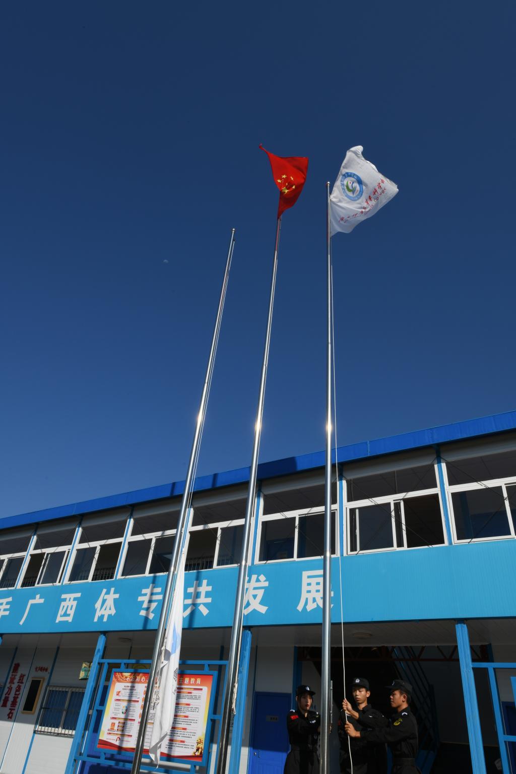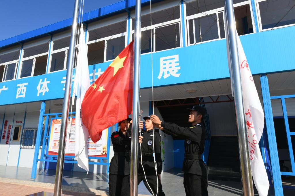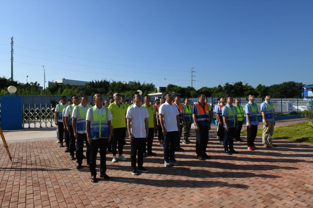 上午9时,全体人员在项目部现场整齐列队,爱体育电子官方网站护校队升旗手迈着整齐的步伐走向升旗台,伴随着激昂奋进的国歌、铿锵有力的校歌和局歌,五星红旗、爱体育电子官方网站校旗和总承包单位司旗在全体人员庄严的注目礼中依次冉冉升起。