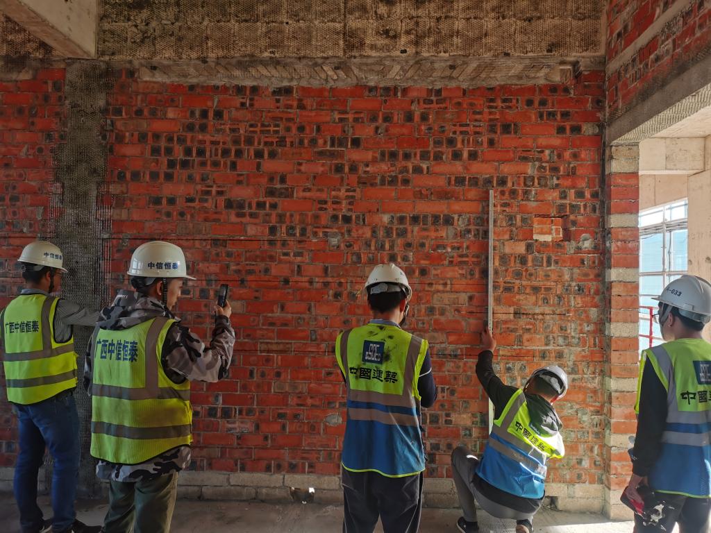 验收组由建设单位、设计单位、监理单位和施工单位组成。经现场实体感观、实测实量检查,以及质量控制、安全和功能检验资料检查后,验收组在项目施工部会议室召开总结会,经项目施工单位对图施工、质量标准、质量保证资料等完成度进行自评,各检查分组负责人分别汇报工程质量情况和验收意见后,验收组一致同意项目教学实验综合楼2-屋面层主体结构分部工程通过验收,同时要求对本次验收中发现问题进行限时整改。会上,南宁高新技术产业开发区建设工程质量安全服务站负责人表示此次验收的主体结构分布工程质量优良,认可本次验收结果,并对现场存在部分问题进行点评,督促施工单位尽快落实相关整改措施。
