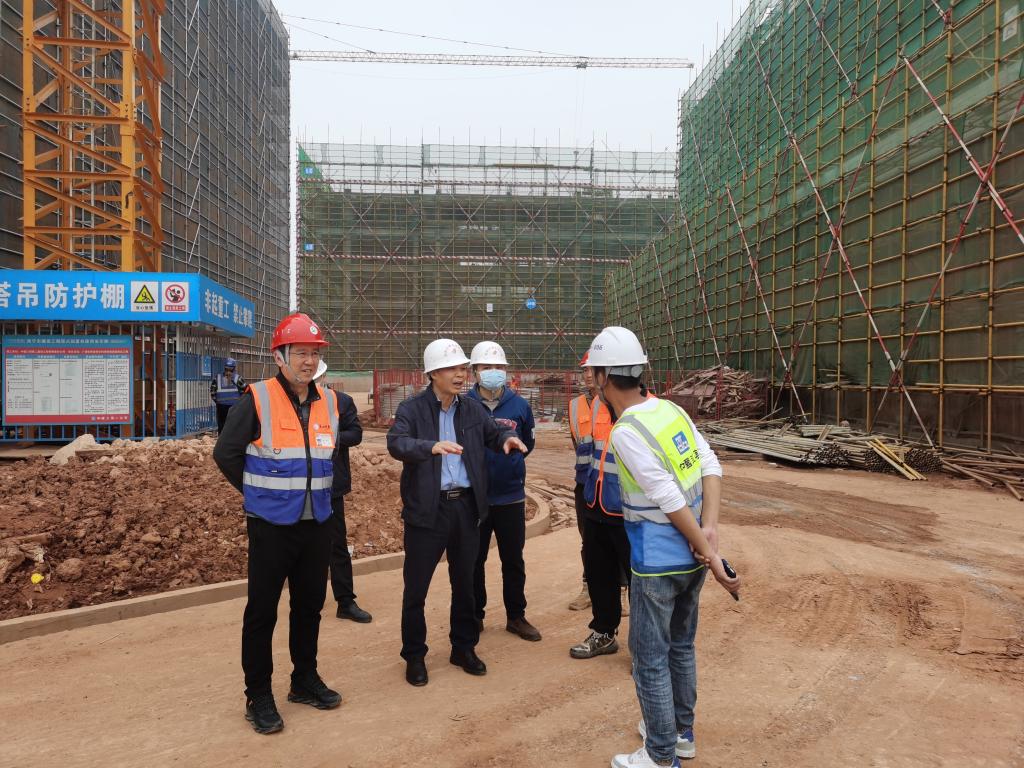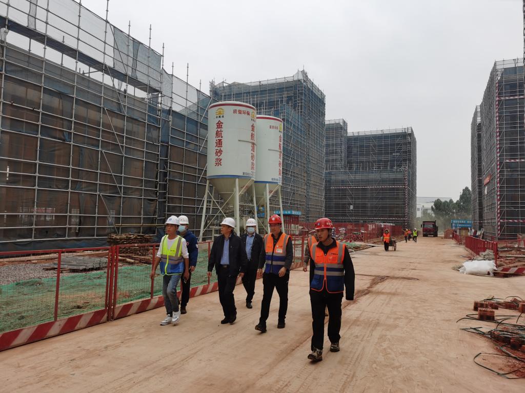 11月19日下午,南宁市高新区建设房产局局长廖子平一行3人,到爱体育电子官方网站相思湖校区项目进行安全生产相关工作检查指导。新校区办、项目监理部及总承包单位相关人员陪同。