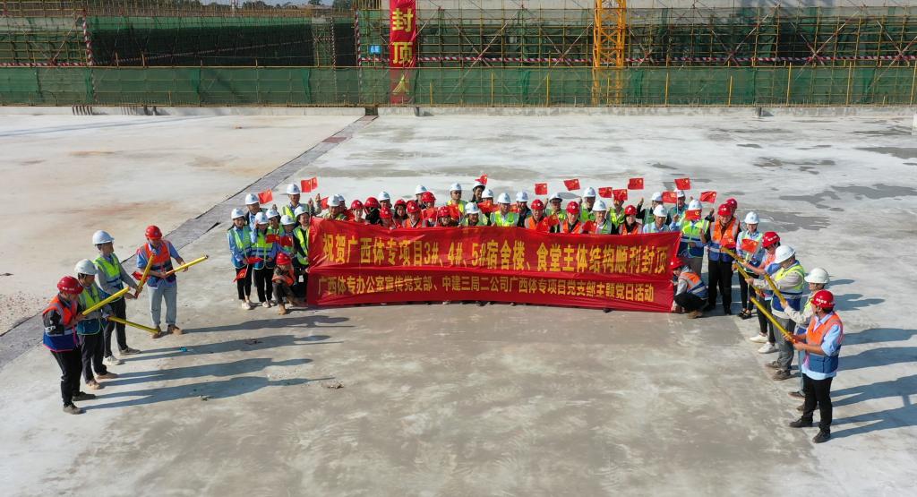 11月30日,相思湖校区项目3#、4#、5#宿舍楼和食堂顺利实现主体结构封顶。项目自10月以来,项目各参建单位全体人员积极配合、共同努力,克服重重困难,加大力量投入,精心组织施工,封顶日期比原计划提前了一个半月之多。在后续的施工建设中全体参建人员将以更加饱满的工作热情,继续保持快速发展的势头,积极努力完成各项计划任务,确保明年项目能够持续快速推进。