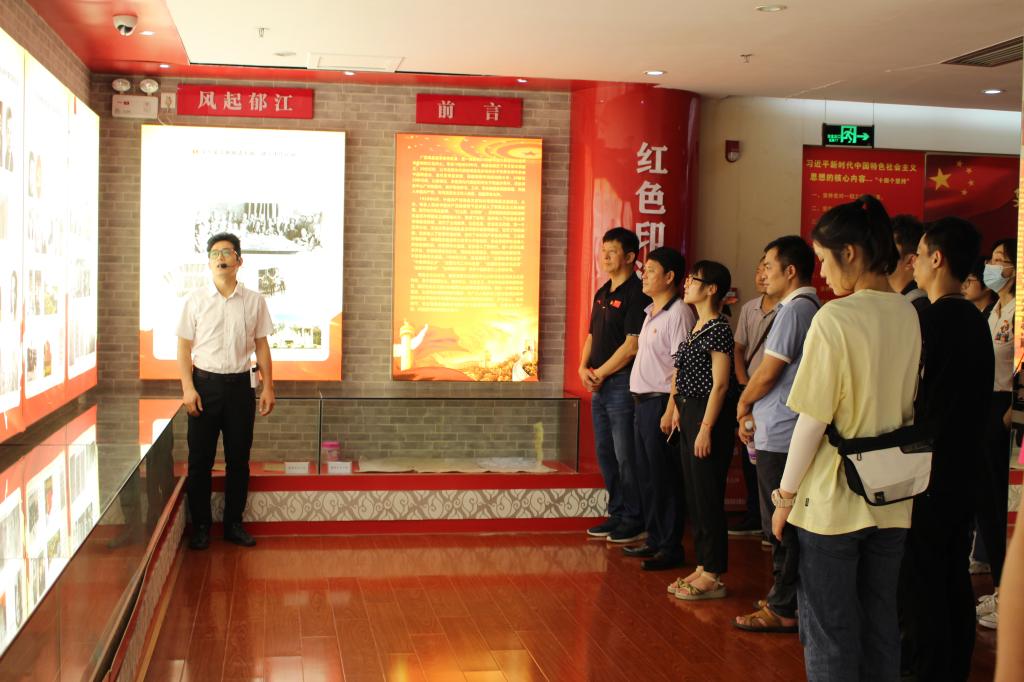 在纪念馆门前,全体党员重温入党誓词。党员们面对党旗举起右手庄严宣誓,用铿锵有力的声音传达了身为共产党员的自豪感和使命感。
