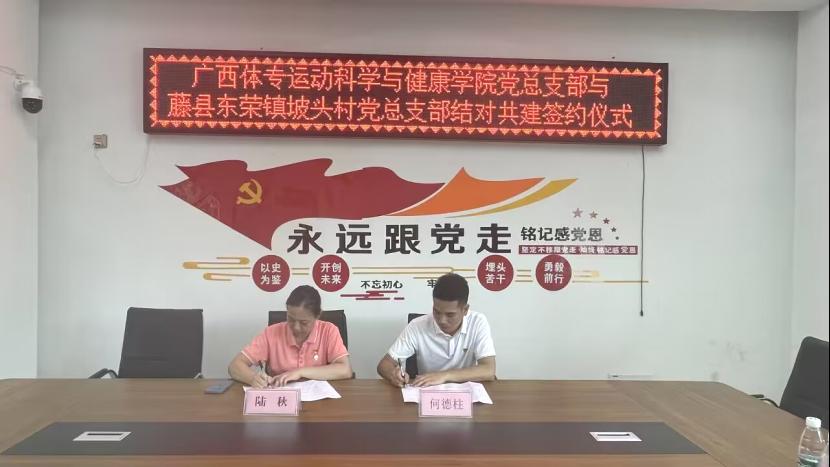 学院党总支部书记陆秋与坡头村党总支部书记何德柱开展共建签约