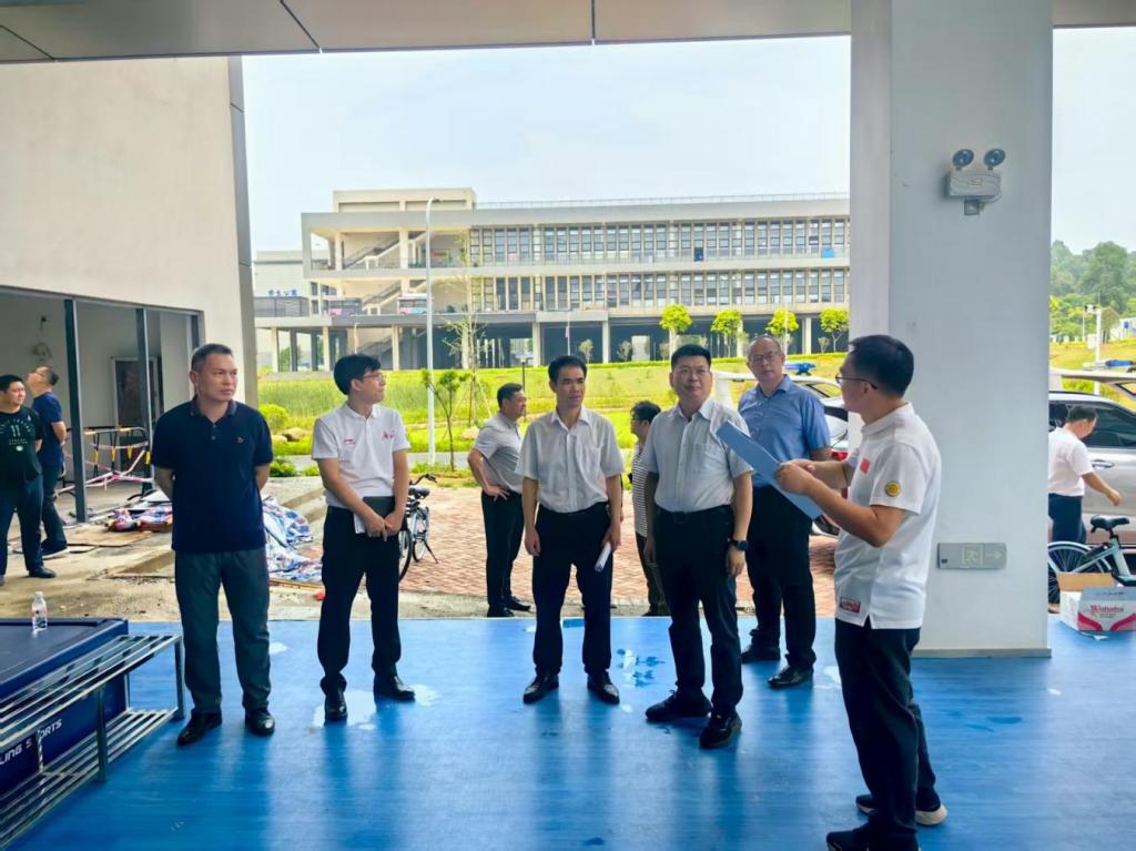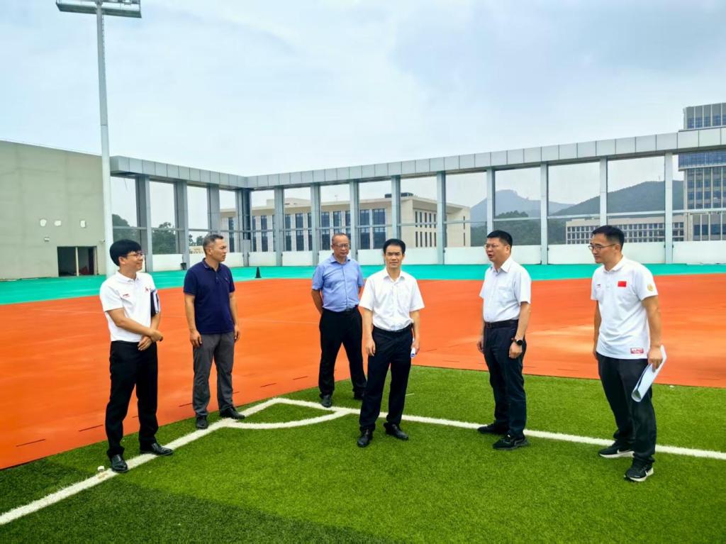 会后,检查组一行到爱体育(中国)综合馆、田径场、游泳馆等现场检查。