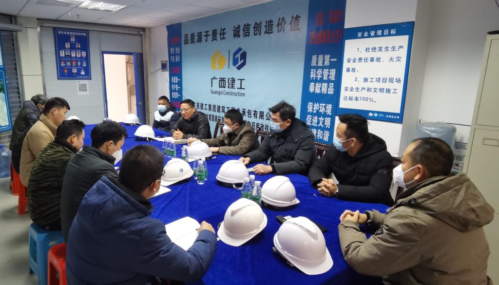 罗永卫主任一行到工地现场了解察看了项目建设和安全管理情况,并在工地会议室召开调研会。会上,施工单位汇报了项目进展和安全措施落实情况:项目克服了基坑深、周边紧挨多栋建筑安全风险大,施工场地狭窄的困难,认真组织科学施工,已经完成基坑开挖和地下室负四、三、二层建设,春节后初六开工,预计2月初全面完成地下室工程进入大楼主体建设阶段。施工单位春节前将开展施工现场的安全隐患排查处理,在春节期间安排人员24小时值班。