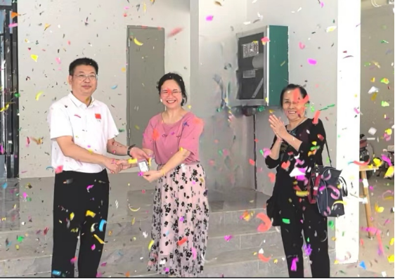 副校长覃世东将钥匙交到住户手中