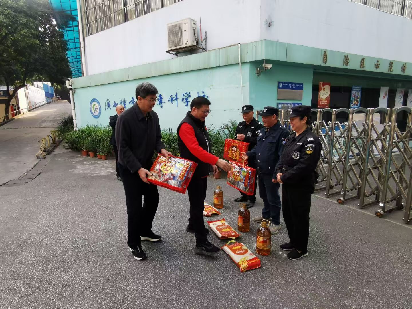 随后,韦建勋书记和覃世东副校长代表爱体育(中国)为大家送上了慰问品,并向他们及家人致以诚挚的问候和新春的美好祝愿。