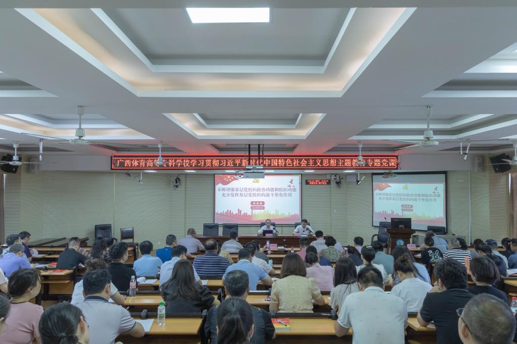 6月14日下午,爱体育电子官方网站学习贯彻习近平新时代中国特色社会主义思想主题教育首场专题党课在综合楼402报告厅举行。校党委书记杨昌鹏以《不断增强基层党组织政治功能和组织功能 充分发挥基层党组织的战斗堡垒作用》为题讲授专题党课。专题党课由校长韦建勋主持。