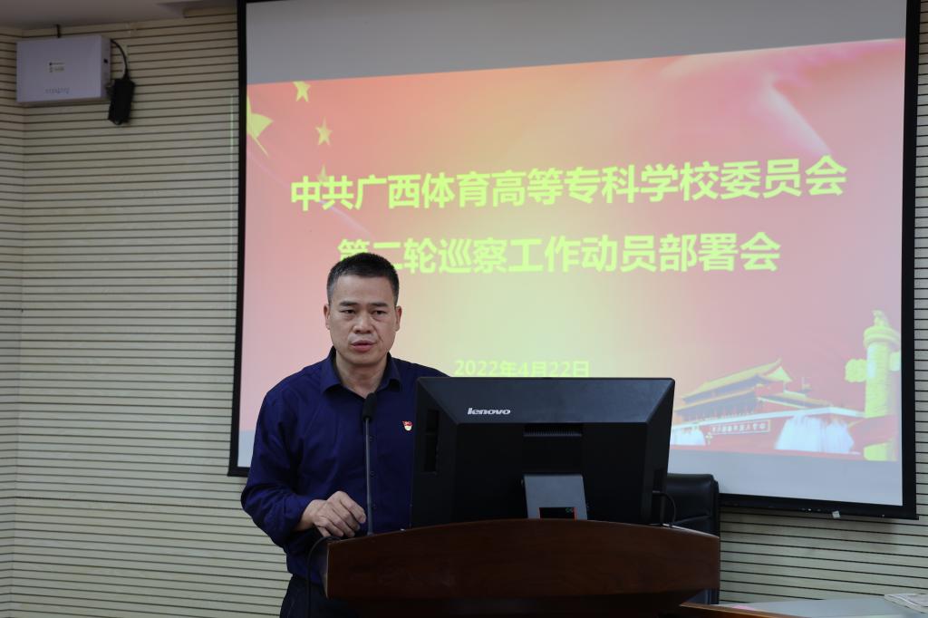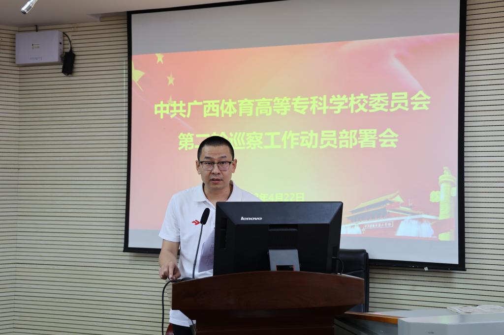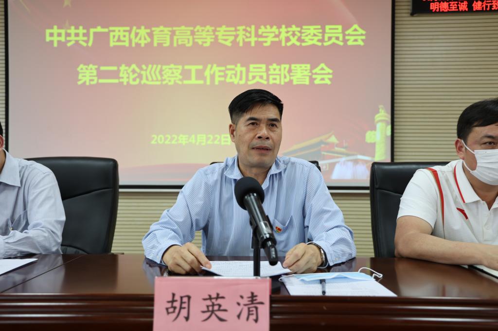 4月22日,爱体育电子官方网站第二轮巡察工作动员部署会议在综合楼402报告厅召开。爱体育(中国)全体领导出席会议、党委巡察组、巡察办全体成员,机关各部门正职、各学院党总支部书记、院长,被巡察单位党支部委员及班子成员参加会议。爱体育(中国)党委副书记、校长、党委巡察工作领导小组副组长胡英清同志主持会议。