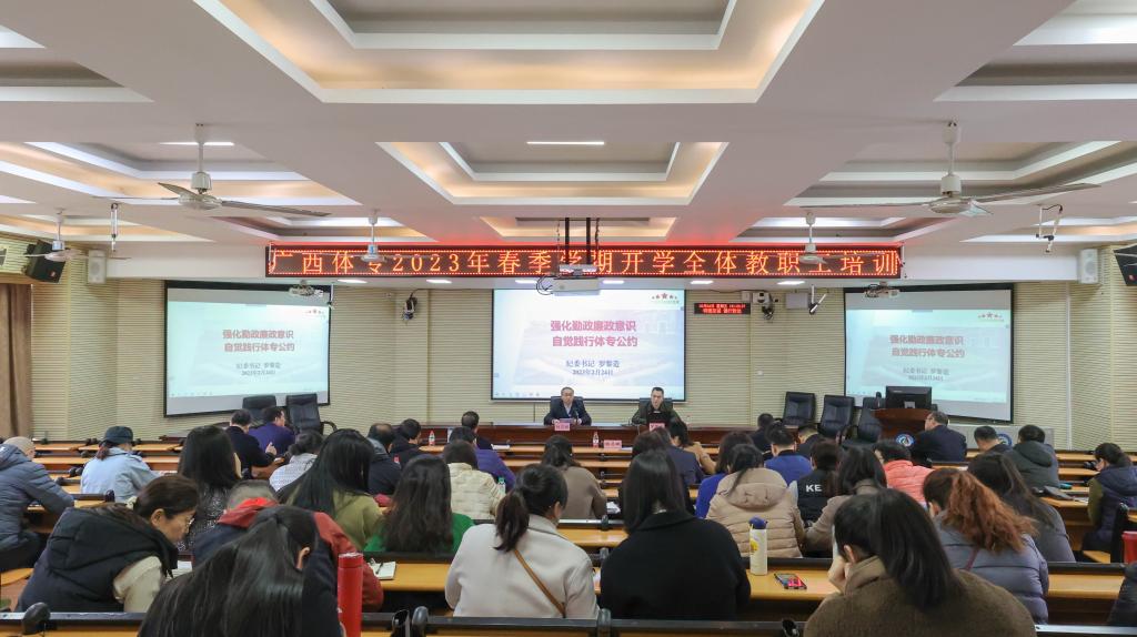 为进一步贯彻落实全面从严治党要求,深入开展党风廉政教育,持续推进“清廉体专”建设,将勤政廉政意识和廉洁文化深深烙印在党员干部和教职工心中,2月24日,在爱体育(中国)召开的2023年春季学期培训会上,爱体育(中国)纪委书记罗黎造以“强化勤政廉政意识、自觉践行体专公约”为题为全体教职工上了一堂廉政党课,爱体育(中国)党委书记杨昌鹏主持党课。爱体育(中国)全体教职工参加了党课。