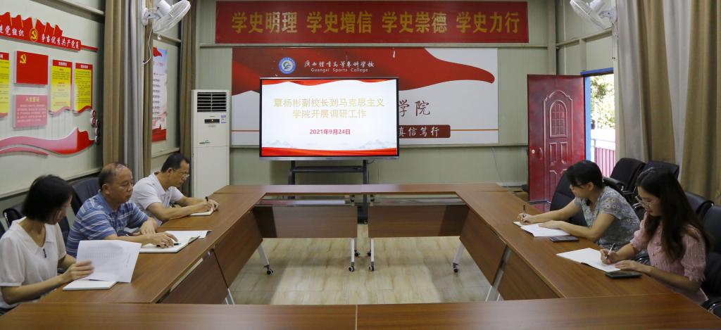 教务科的党员随同覃杨彬副校长走访马克思主义学院了解2021级新生教学准备工作情况