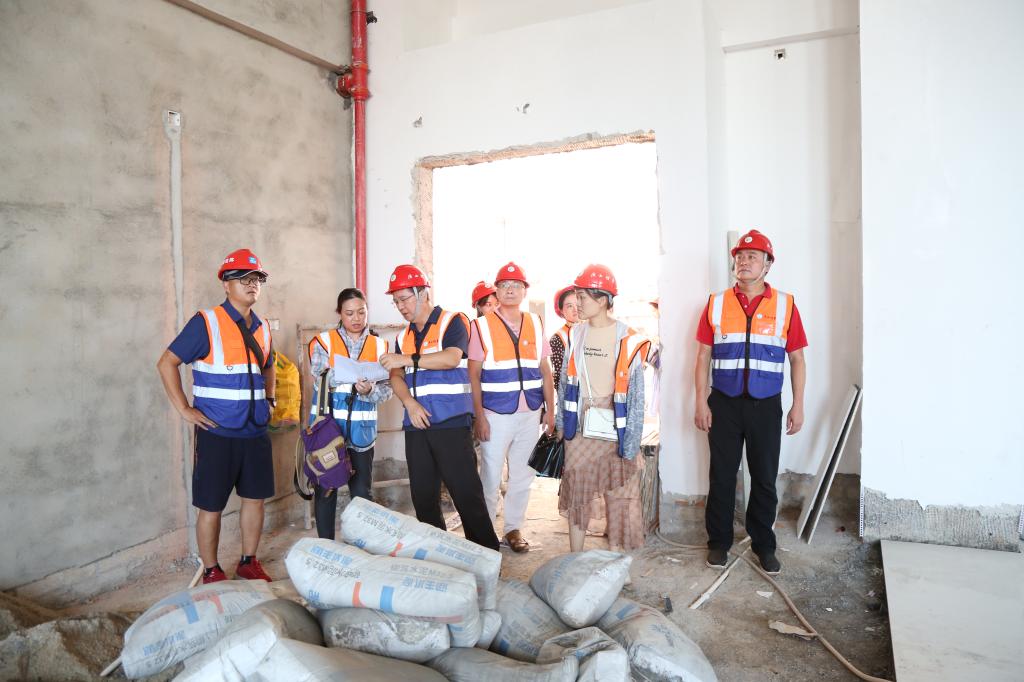 邱团副校长一行到新校区听取了新校区办对教学楼等场馆的工作介绍,对教学楼、篮球馆等进行了实地调研,对新校区教室、实训(实验)室、运动场馆室内二次装修的设施设备购置进行了初步构想。