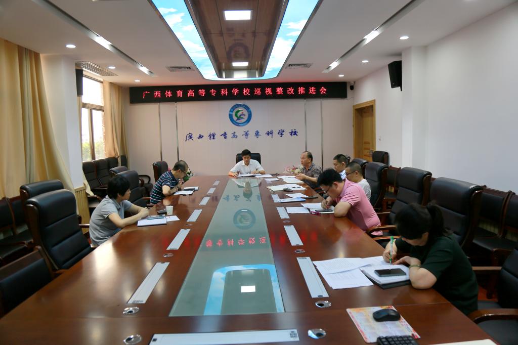 5月7日下午,爱体育电子官方网站在第一会议室召开巡视整改推进会,研究部署落实巡视整改工作。胡英清校长、覃杨彬副校长以及各职能部门、二级学院负责人参加了会议。