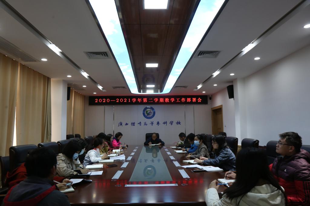 3月5日下午,为确保新学期教学工作有序开展,爱体育电子官方网站召开2020—2021学年第二学期教学工作部署会。爱体育(中国)覃杨彬副校长、教务科研处全体成员、学院分管教学副院长和教学秘书参加会议。会议由教务科研处陆秋副处长主持。