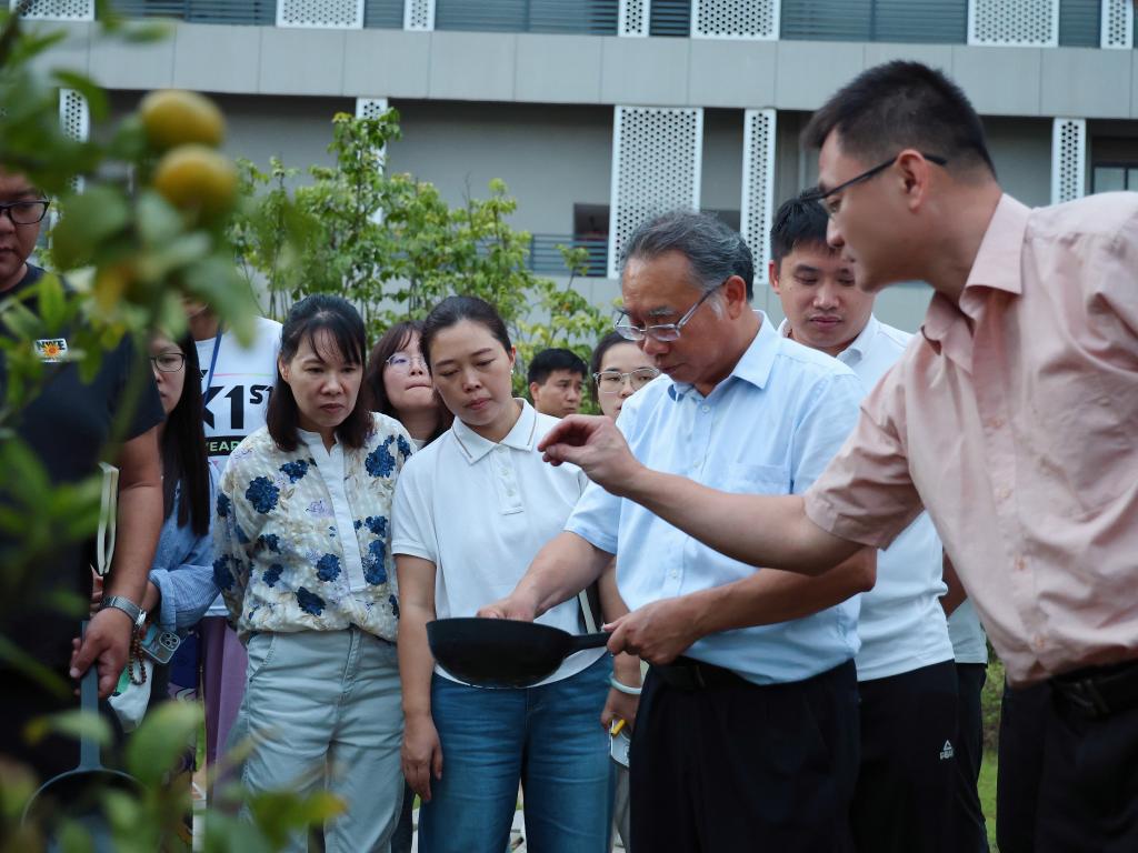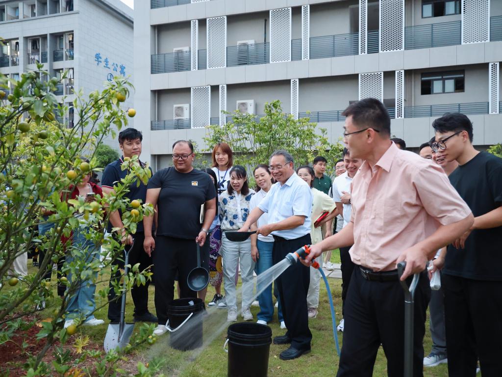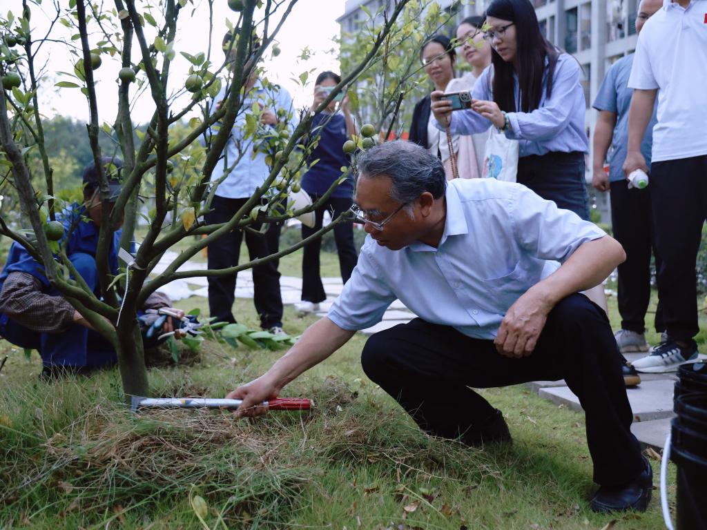 理论讲解结束后,杨昌鹏书记还与老师们一同来到校园西门附近的绿地,示范如何给柑橘树、黄皮树等进行修剪、施肥,帮助老师们更直观地理解和掌握果树管理技巧。