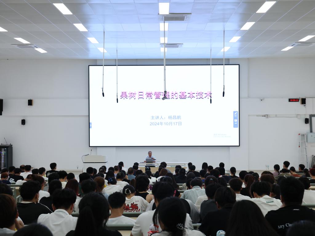 2024年10月17日,爱体育(中国)党委书记、农学博士杨昌鹏教授,为各学院承担劳动课程教学的教师及部分学生代表,讲授了一堂以“果树日常管理的基本技术”为主题的劳动教育课程。