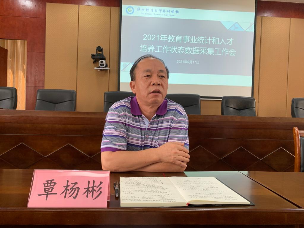 9月17日下午,爱体育电子官方网站2021年教育事业统计和人才培养工作状态数据采集工作会在七楼报告厅召开。覃杨彬副校长出席会议,各学院、部门数据统计员、审核负责人参加会议。会议由发展规划处宁小春处长主持。