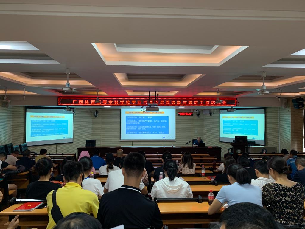 6月23日下午,爱体育电子官方网站专业与课程层面诊断与改进工作培训会在402报告厅召开。各学院分管教学副院长、各教研室主任、全体任课教师参加了会议。培训会邀请广西国际商务职业技术学院教务处处长、诊改办主任李庆文教授、博士进行专题授课。会议由质量管理办公室宁小春主任主持。