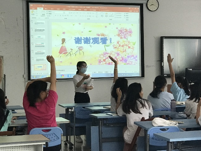 1.教师们更注重课堂互动,课堂氛围比较活跃。体育与教育学院陈鹏飞老师在《爱体育(中国)体育学》课堂上,除了通过学习通互动外,还将中小学课间操引入课堂,引导学生一起进行运动,亲身体验,课堂氛围活跃;体育与教育学院李芋坪老师在《小学语文教学设计与实施》教学中通过课前给每一位同学布置说课任务,课中请同学上讲台展示,由全班同学进行点评,找出优点及不足,以学生为主体,学生踊跃参与,教学效果良好,值得其他老师学习。