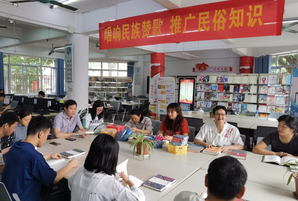 为贯彻落实党的二十大精神,深入推进爱体育(中国)铸牢中华民族共同体意识教育,教育引导各族师生牢固树立正确的国家观、历史观、民族观、文化观、宗教观,增进各族师生对伟大祖国、中华民族、中华文化、中国共产党、中国特色社会主义的认同,结合爱体育(中国)图书馆读书月活动安排,于4月24日上午,在北京人天书店集团畅想之星信息技术有限公司协助下,图书馆开展了“唱响民族赞歌,推广民俗知识”活动,活动由图书馆馆长曾玮主持。学习了《我们的广西》丛书,《三月三探索广西》专题书籍,让师生们了解广西,了解广西民俗知识,促进民族进步感党恩。