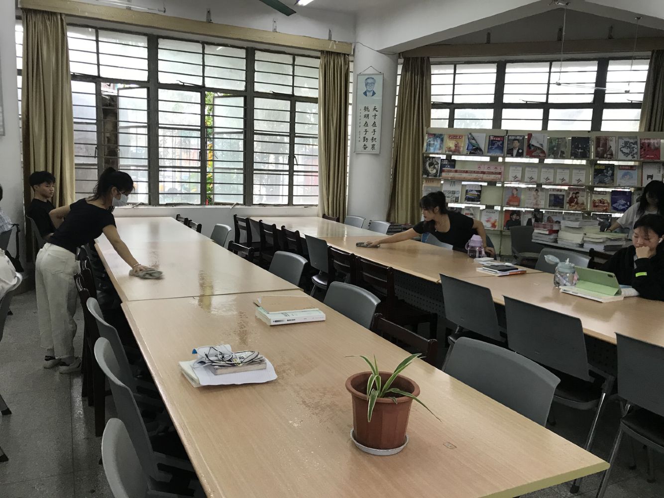 活动开展过程中,同学们擦桌椅、书架和电脑。清洗脏污地面,整理杂志和报纸。全体勤工助学的同学以饱满的热情投入到此次活动当中,同学们分工协作、干劲十足,大家发扬了不怕苦不怕累的劳动精神,传承了劳动光荣的优良传统。