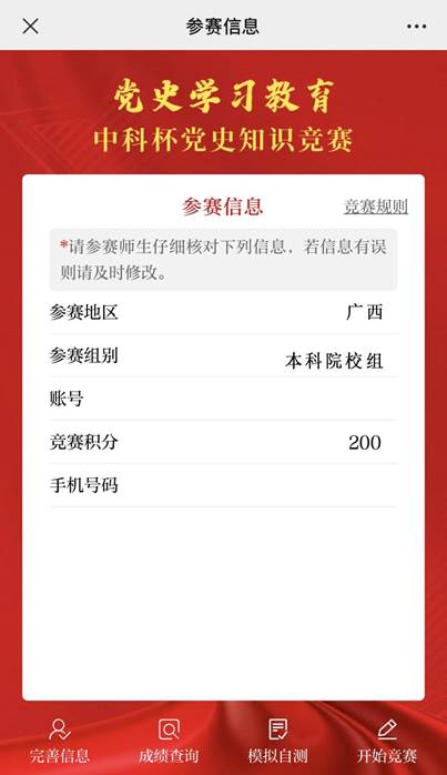 2.为保证本次竞赛的公正性和真实性,参赛者必须以本人手机号注册账户,每人(以手机号为准)仅有一次竞赛答题机会。