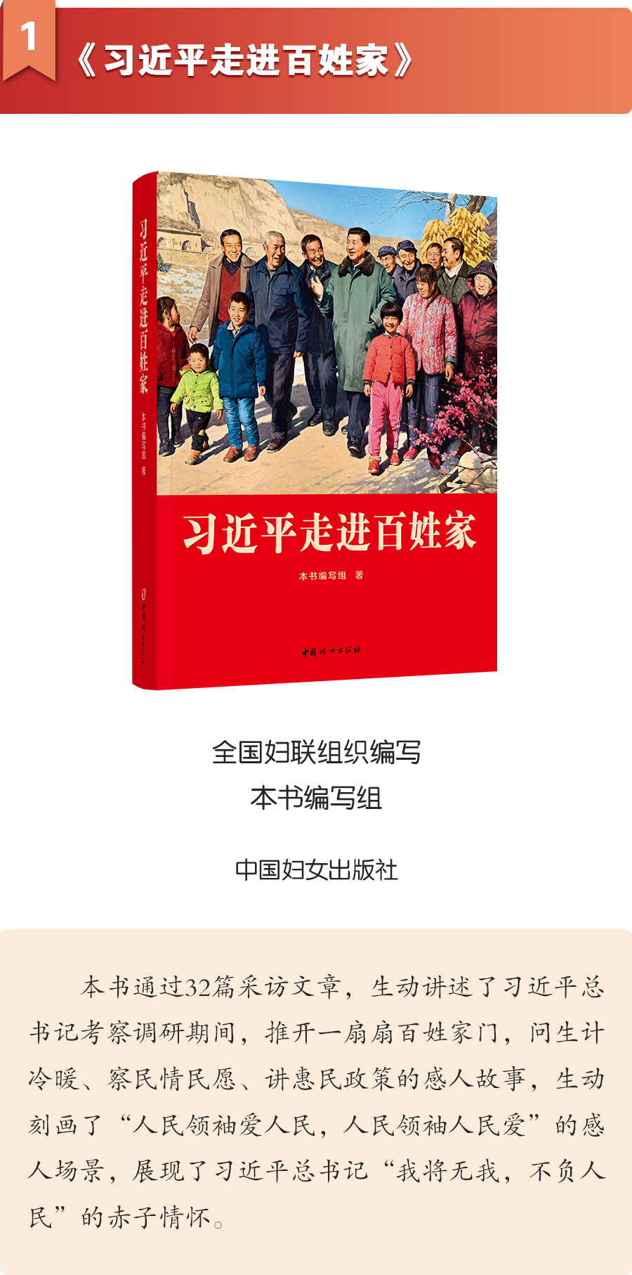 2023年1月书单,共荐书15种,包括《习近平走进百姓家》《红楼》《把心交给人民》《古代中国文化讲义》《中国味道》等多题材多体裁主题好书,供您参考学习。