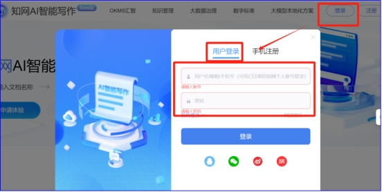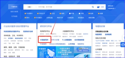 2、也可在知网首页点击入口按钮“AI智能写作”进入系统(如下图位置)。