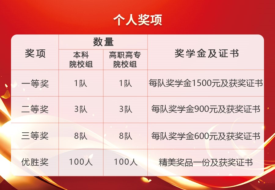 3.各组别竞赛成绩前100名的参赛者将获得精美礼品和优胜奖荣誉证书。