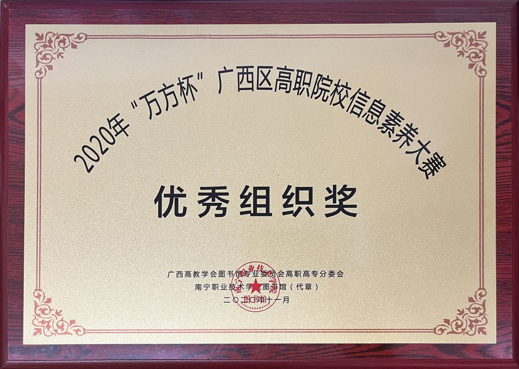 2020年“万方杯”广西区高职院校信息素养大赛优秀组织奖