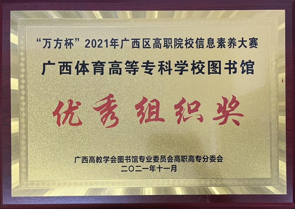 “万方杯”2021年广西区高职院校信息素养大学优秀组织奖