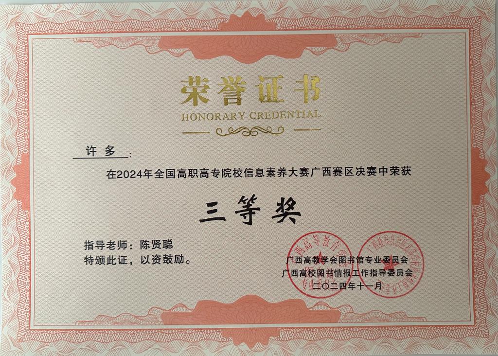 许多同学荣获信息素养大赛广西赛区决赛三等奖