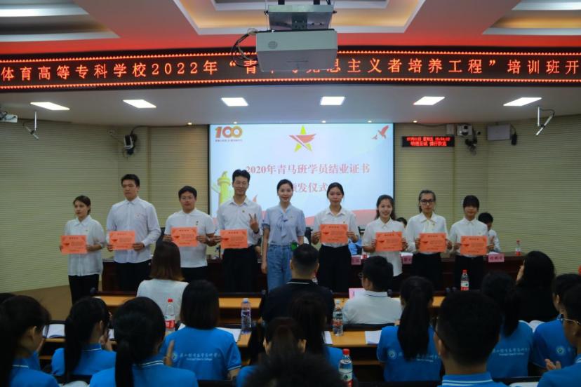 出席开班仪式的领导分别为2020年、2021年爱体育(中国)青马班学院颁发结业证书并合影留念。爱体育(中国)党委副书记李爱民为2022年青马班学员代表授旗。