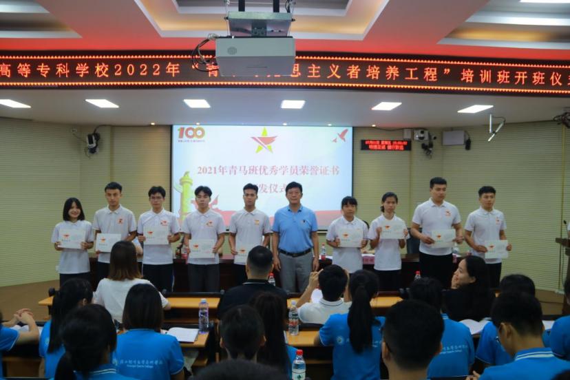 2021年青马班优秀结业学员廖俊龙代表作结业感言,言词真挚,号召青马班的新学员能严格要求自己,做一名合格青马班学员。2022年青马班新生学员黄柳萍代表发言,讲述自己加入青马班的决心,希望能通过在青马班的学习,做一名合格的马克思主义拥护者、实践者、传播者。