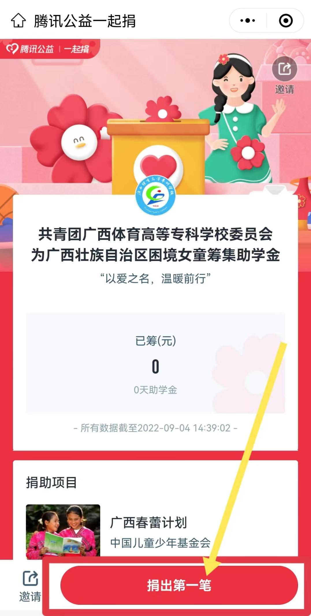 为巩固拓展脱贫攻坚成果,助力乡村振兴,帮助因各种原因陷入困境的女童顺利完成学业,共青团爱体育电子官方网站委员会在“99公益日”(2022年9月7日--9月9日)诚邀全体师生、社会各界爱心人士为广西壮族自治区困境女童伸出援手,奉献爱心,以小善凝聚大爱,以行动温暖万家,共同为儿童事业健康发展贡献自己的力量!