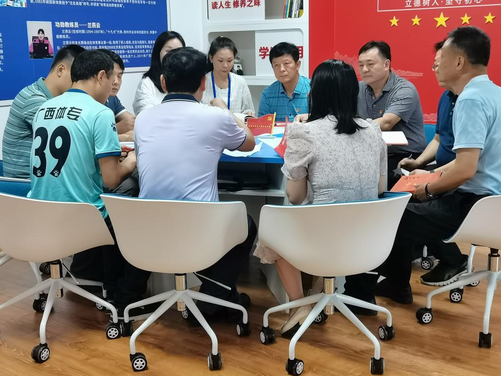 副校长邱团同志带领党员们阅读经典党史书籍,帮助大家从理论与实践的结合上深刻理解中国共产党的初心使命。读书现场,党员们共同分享他们的读书成果和心得,主动交流,讨论非常热烈。两名党员热情洋溢的朗诵《年轻干部要读书、读好书、善读书》,把现场气氛推向高潮。最后支部党员参观中华体育精神育人虚拟现实教学中心,并体验VR虚拟仿真实验教学平台。