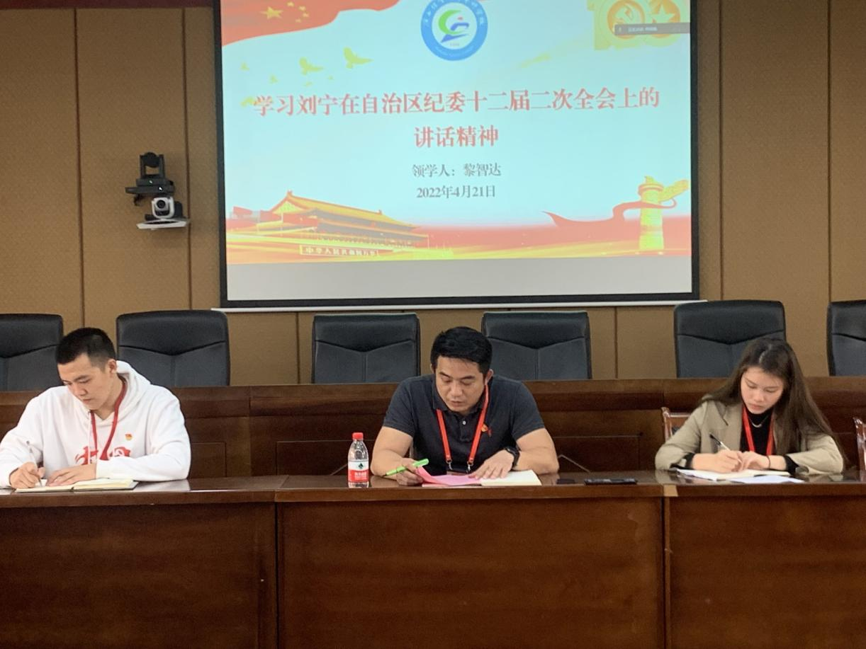 会上,由黎智达书记领学刘宁在自治区纪委十二届二次全会上的讲话精神: