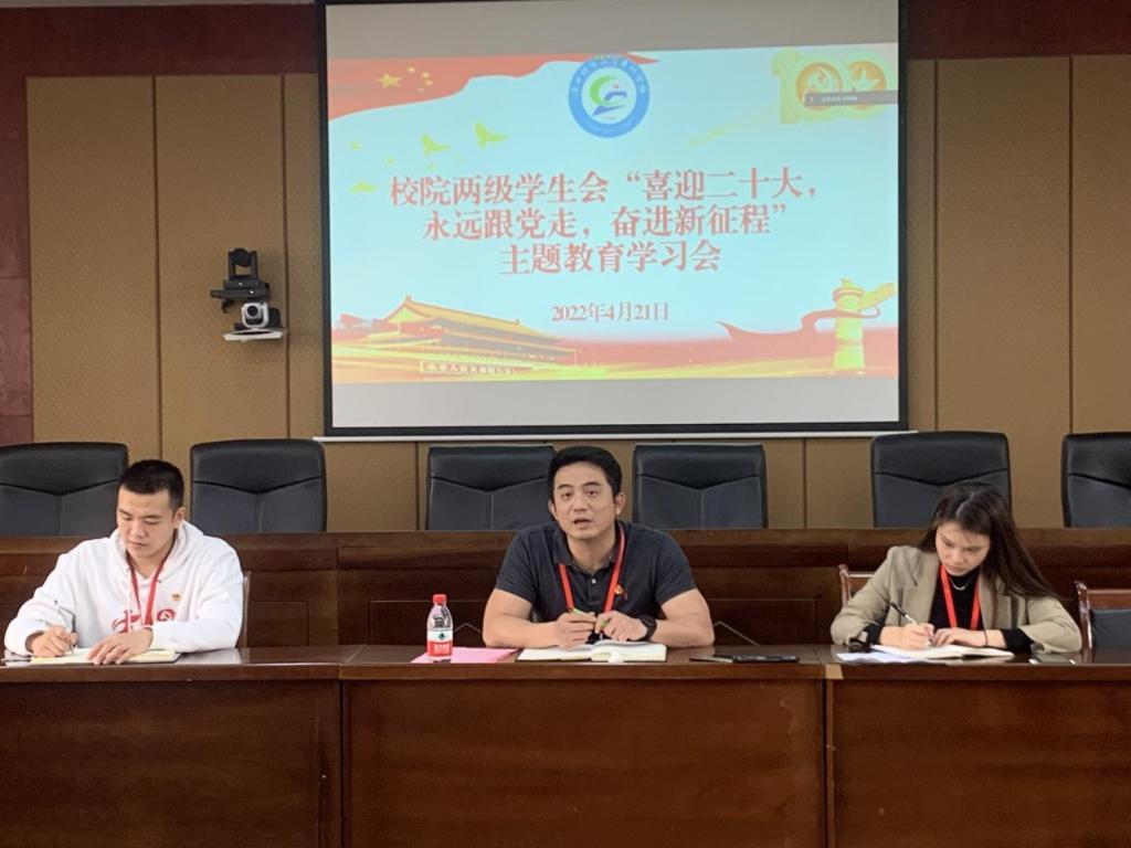 根据区学联下发的学生会工作提示的文件精神,为加强爱体育电子官方网站校院两级学生会组织的沟通交流学习,4月21日,爱体育电子官方网站学生会通过线上线下相结合的形式召开了2022年爱体育电子官方网站校院两级学生会“喜迎二十大、永远跟党走、奋进新征程”主题教育学习会,爱体育电子官方网站第二十八届学生会工作人员及各学院主席团成员参加了本次学习会,同时还邀请到了校团委书记黎智达出席本次学习会,会议由校学生会主席团成员罗思源主持。