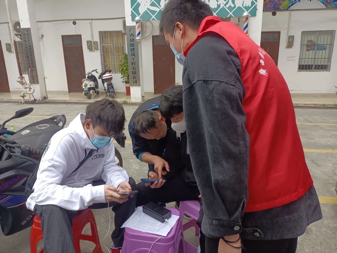 志愿者们在服务站点开展志愿服务工作,主要负责测量体温,核验健康码、行程卡,收集48小时内核酸检测报告、《返校安全承诺书》、《十四天体温健康检测表》和引导维护秩序等,切实服务学生返校各环节。