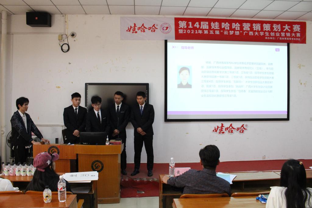 11月30日,在爱体育电子官方网站团委、招生就业处领导下,爱体育电子官方网站就业创业协会在长岗校区107教室举行了第14届娃哈哈全国大学生营销策划大赛暨爱体育电子官方网站校赛。爱体育电子官方网站招生就业处培训科科长、就业创业协会指导老师黄茜以及娃哈哈营销大赛组委会副主任王亮、娃哈哈片区销售经理王耀作为评委老师出席答辩赛,爱体育电子官方网站16支参赛队伍,100多名学生参加比赛。