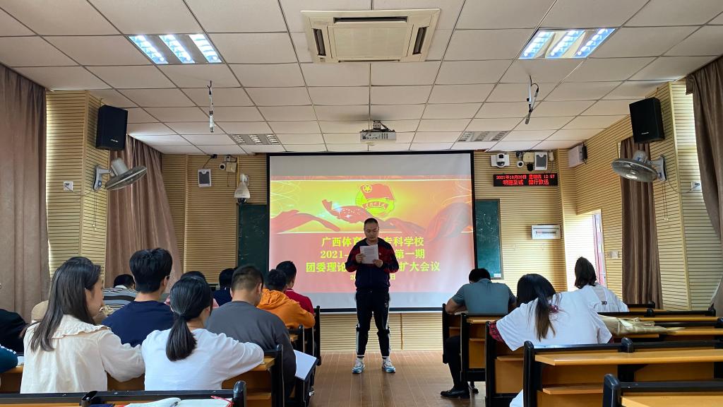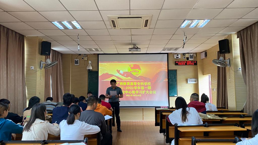 10月28日,爱体育电子官方网站团委在公园路校区301教室召开2021-2022学年第一期团委理论学习中心组学习扩大会暨党史学习教育第一次集中学习会,会议一共有4项议程:一是学习习近平总书记在纪念辛亥革命110周年大会上的讲话;二是学习习近平总书记在陕西榆林考察时的重要讲话精神;三是学习习近平总书记“七一”重要讲话精神;四是学习心得分享。校团委书记黎智达、副书记韦宛辰,各学院团委书记、教工团支部、校院两级学生会成员代表、社团联合会主席团成员参加了学习会,会议由校团委委员徐梓福主持。