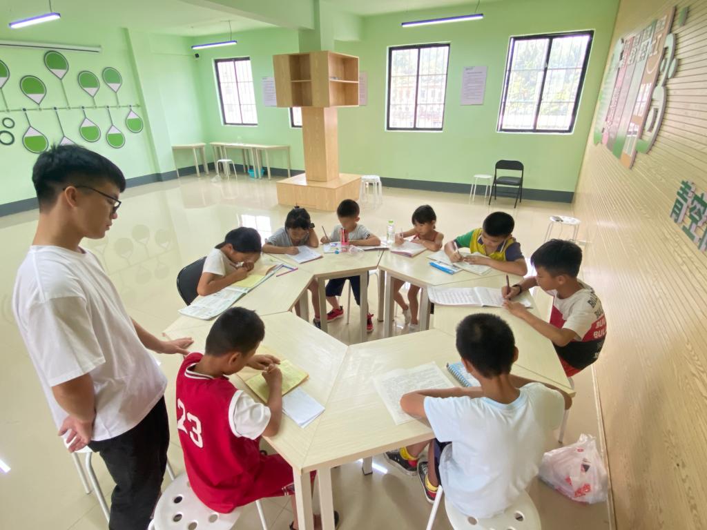 大学生志愿者正在江西镇作课外辅导